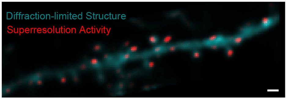 Incoming image data from photodetectors is processed to extract biologically relevant signals, such as synaptic activity. High-speed imaging of fast indicators allows us to adapt methods from localization microscopy to generate super-resolution maps of activity that report synapse locations. Using the inferred synapse locations, we apply matrix-factorization approaches to decompose the recordings into the activity of each synapse overtime. We evaluate data-processing algorithms using multiple ground-truth strategies, including post hoc tissue expansion and immunohistochemical labeling of synapses.