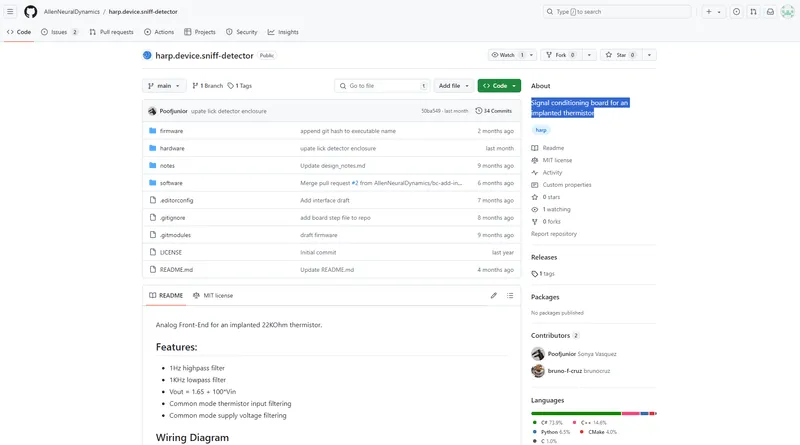 On this repository you can find documentation of the Harp protocol, what is a Harp device and the Harp Timestamp Bus. The Harp technology was originally thought at Champalimaud Foundation to suppress the lack of efficient binary protocols for scientific hardware communication.