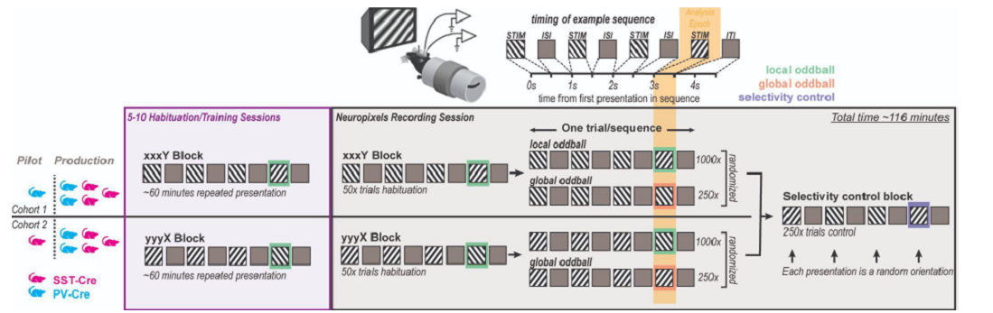 Predictive processing theorizes that the brain continuously predicts sensory inputs, refining neuronal responses by minimizing prediction errors. Our collaborative experiments test these mechanisms using mismatch stimuli in mice and primates. The resulting datasets are shared via the OpenScope program and from collaborating laboratories, fostering community analysis and iterative refinement of predictive processing models.