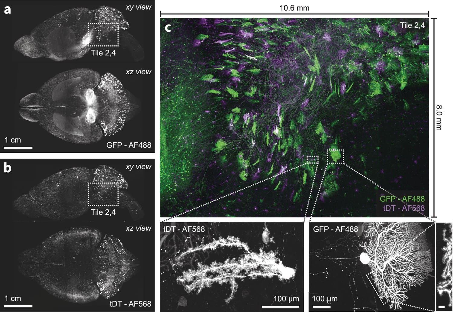 This protocol discusses how to mount the sample holder into the microscope and the steps to acquire a full-brain volumetric image using the custom ExA-SPIM software.