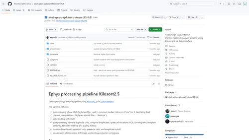 An open, containerized electrophysiology analysis pipeline using Kilosort via SpikeInterface. The pipeline includes preprocessing, spike sorting, postprocessing, curation based on unit quality metrics, and visualization with sortingview.